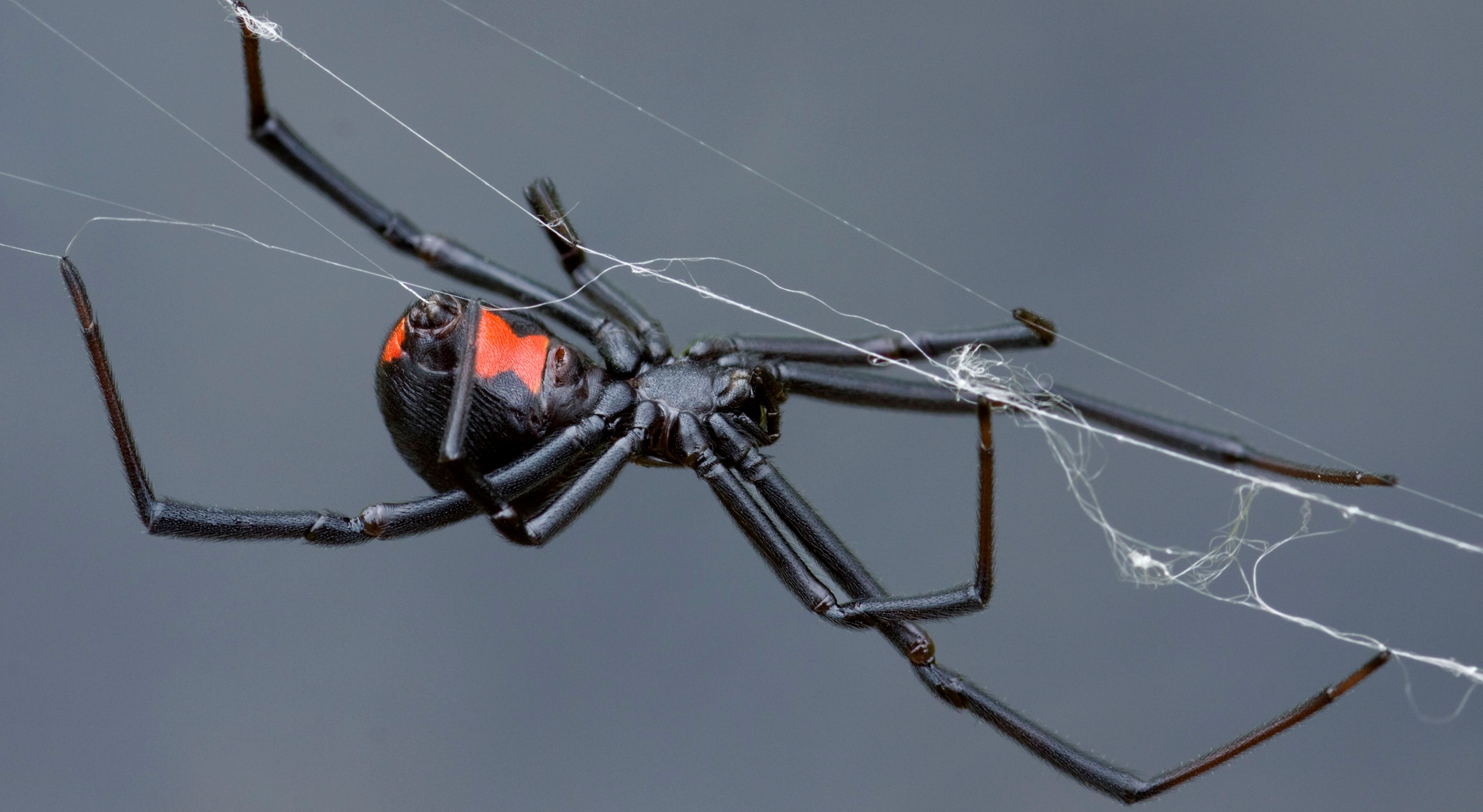 Black Widow. One of the most infamous spiders, the black widow is perhaps the most easily identifiable of spiders. The body of the black widow is glossy, black, and round with a striking red marking on their underside, usually in the shape of an hourglass. Found almost anywhere there is a stable source of heat, an ample supply of food, and a dark place to hide, this spider is best avoided. The bite of the black widow can be identified initially by red swelling that is painful to touch. In 4 to 6 hours telltale symptoms develop including muscle cramps, nausea, vomiting, difficulty breathing, headache, and muscle rigidity. Immediate medical attention is warranted if bitten.