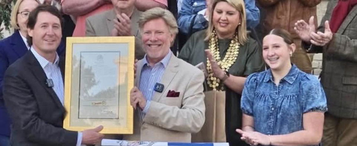 Natchez Mayor Dan Gibson gave Forrest Johnson a certificate of recognition this week. Johnson recently ran seven marathon on seven continents.