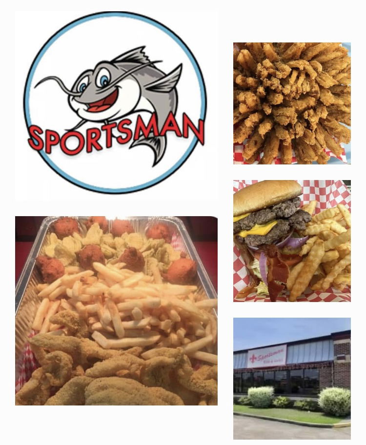 SPORTSMAN FISH & GRILL: Dinners Plates: Catfish, Chicken Tenders, Popcorn Shrimp, Fish & Popcorn Shrimp Combo, Oysters, Jumbo Shrimp, Combo Fish & Jumbo Shrimp, Combo Fish, Jumbo Shrimp & Oysters, Oysters & Shrimp, Boiled Shrimp, Shrimp Overload, Plates served with fries, slaw and hushpuppies. Be sure to try our great tasting Burgers, Po'Boys and Sandwiches: Bloomin' Onions, Taco Burgers, Salads, Sides, Kid's Meals, Desserts. Family Packages Available: Serve your family or party with fish filets, chicken tenders, cole slaw, fries, fried pickles and hush puppies! Family Parties & Events Welcome! 1598 Carter St., Vidalia, 318-336-8888. Sat.-Thurs. 11-9, Fri. 11-10. Dine In or Drive Thru. Order ahead by phone for large orders. GREAT FOOD & SERVICE AT FAMILY PRICES!