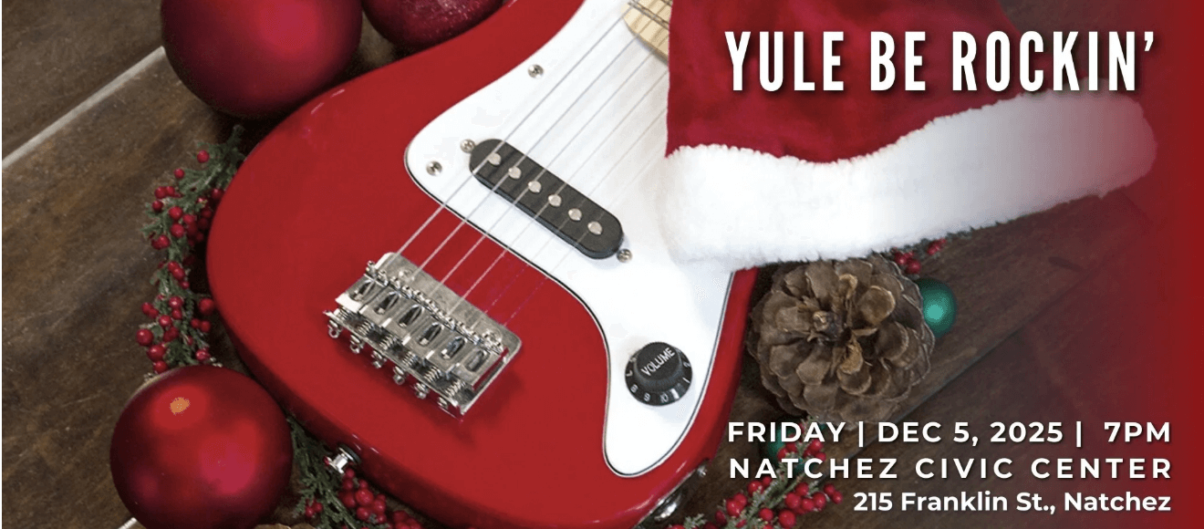 The Natchez Festival of Music presents Yule Be Rockin', Dec. 5 at 7 p.m. at the civic center, 215 Franklin St. An annual favorite December event in Natchez, Christmas cabaret’s Yule Be Rockin’ turns up the volume on your favorite seasonal tunes. From bold new takes on the classics to heart-pounding hits that will have you singing and dancing along, this holiday community social is all about festive fun with an edge. Featuring incredible artists like guitarist Barry Leach, soprano Patricia Garner, and tenor Storm Wade. Tickets are $50 or $450 for a table of 10 people. https://www.eventbrite.com/e/yule-be-rockin-tickets-1738462180179?aff=oddtdtcreator