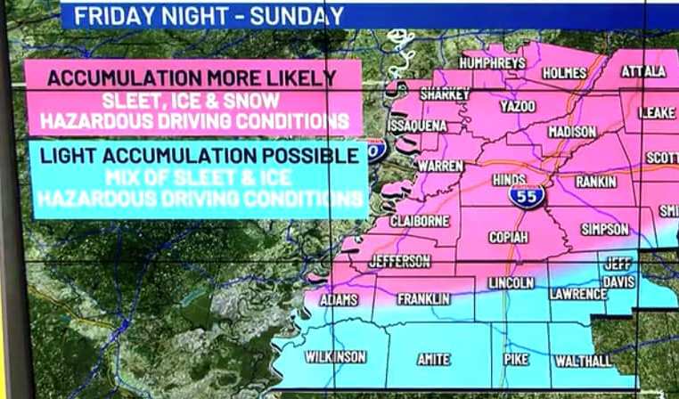 The latest forecast calls for mixed precipitation, flurries or light snow fpr the Natchez area, Sunday, Jan. 18.